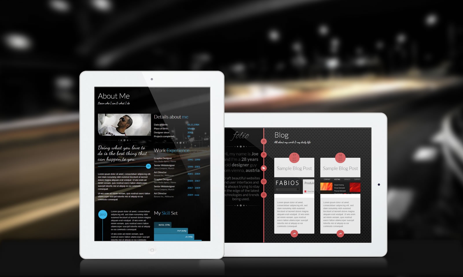 Folio is a simple to use yet beautiful portfolio template made of HTML, CSS, JS and some PHP. It was published via our label infuse on the ThemeForest Marketplace and can be bought there for only 14$.
